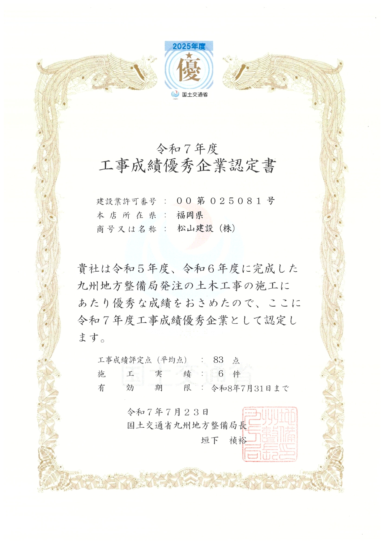 2025.7.23 令和7年度工事成績優秀優秀企業認定式が執り行われました。